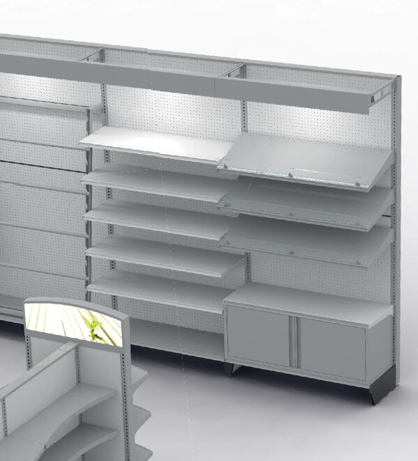 From slat wall and plain panels, to perforated and metal grids, our custom gondola shelving back panel solutions are limitless. All backpanels are extremely sturdy and can hold hundreds of pounds of weight so you can rest assured your store is always in safe operations, while maintaining a beautiful aesthetic.